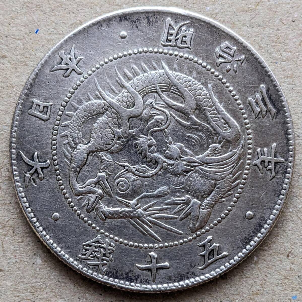 - 密葉脈/連点アリ M3 旭日竜大型50銭銀貨 明治3年(1870年) 日本 EF