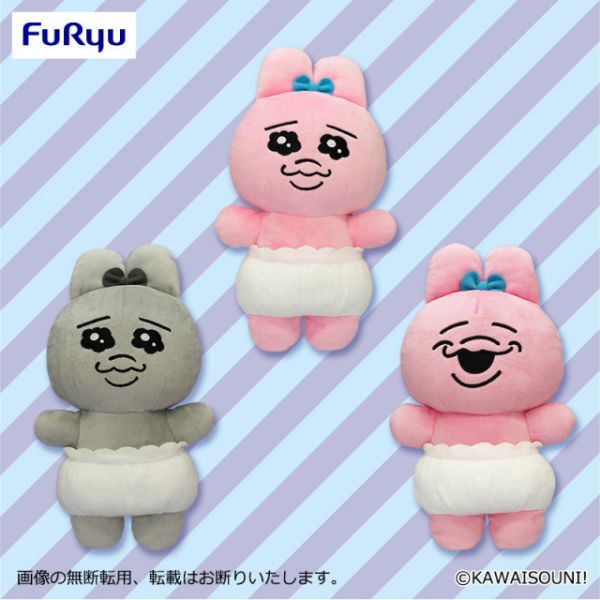 - 全3種セット【おぱんちゅうさぎ】ぬいぐるみ ノーマル・にっこり・モノクロ 全長約25cm 可哀想に! 新品 タグ付き