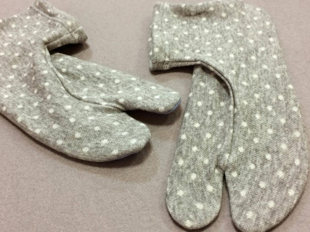 - ★複数注文できます★気軽に履けるプリントデニムストレッチ足袋 おしゃれ着物や浴衣にも!ドット柄グレー
