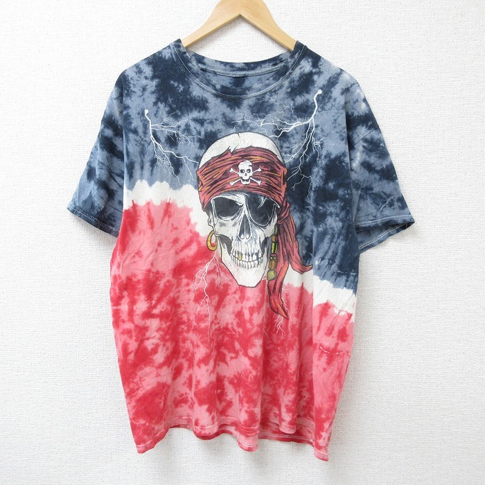 > XL/古着 半袖 Tシャツ メンズ スカルパイレーツ 大きいサイズ クルーネック 紺他 ネイビー タイダイ 25jun16 中古