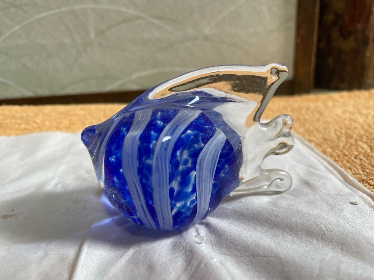 - アンティーク?骨董品?ガラス製?置物?青色?魚?汚れあり、338です。