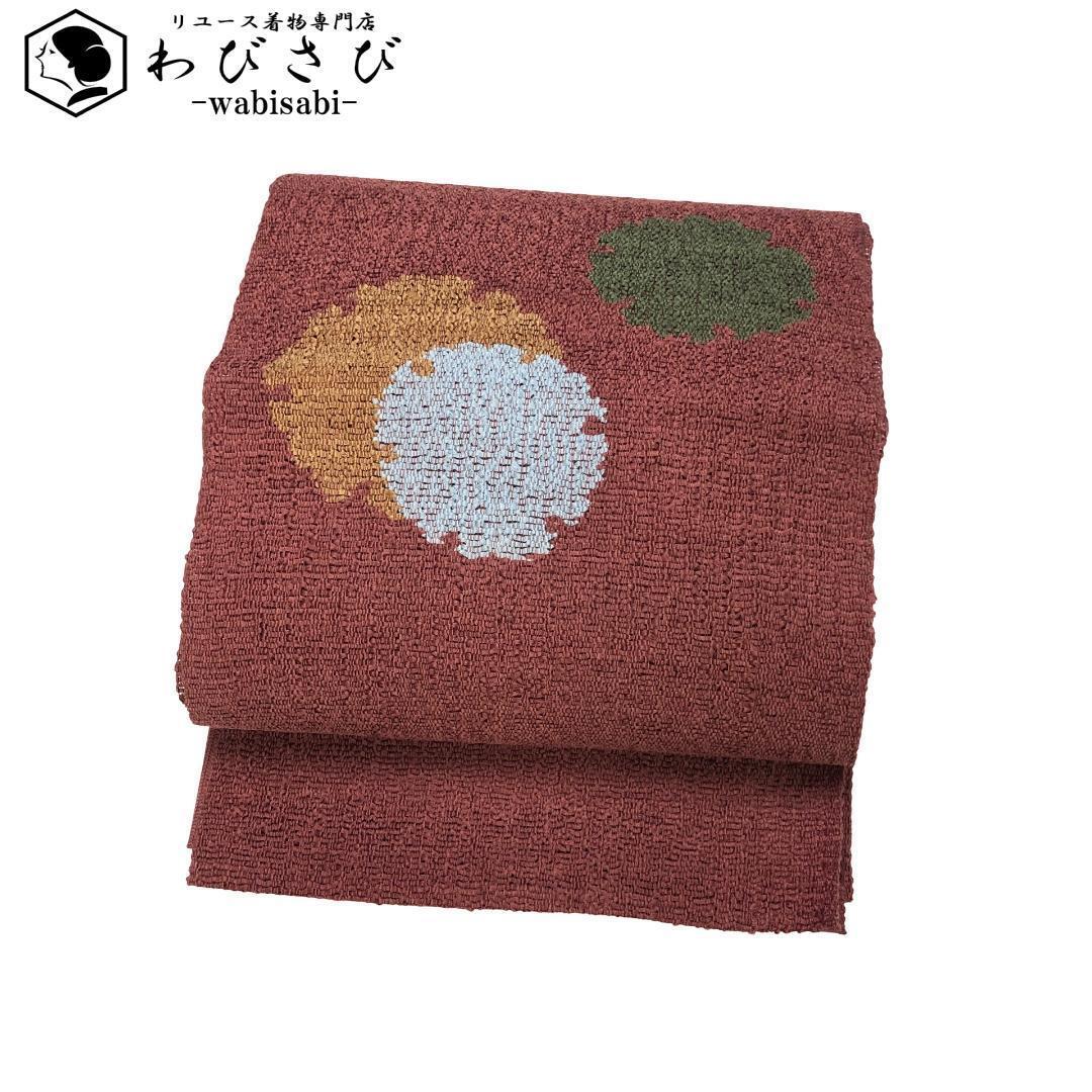 - 夏帯 名古屋帯 絽 雪輪模様 帯紅色 O-5200 着物 きもの kimono 和服 和装 中古 リサイクル着物 【送料無料】