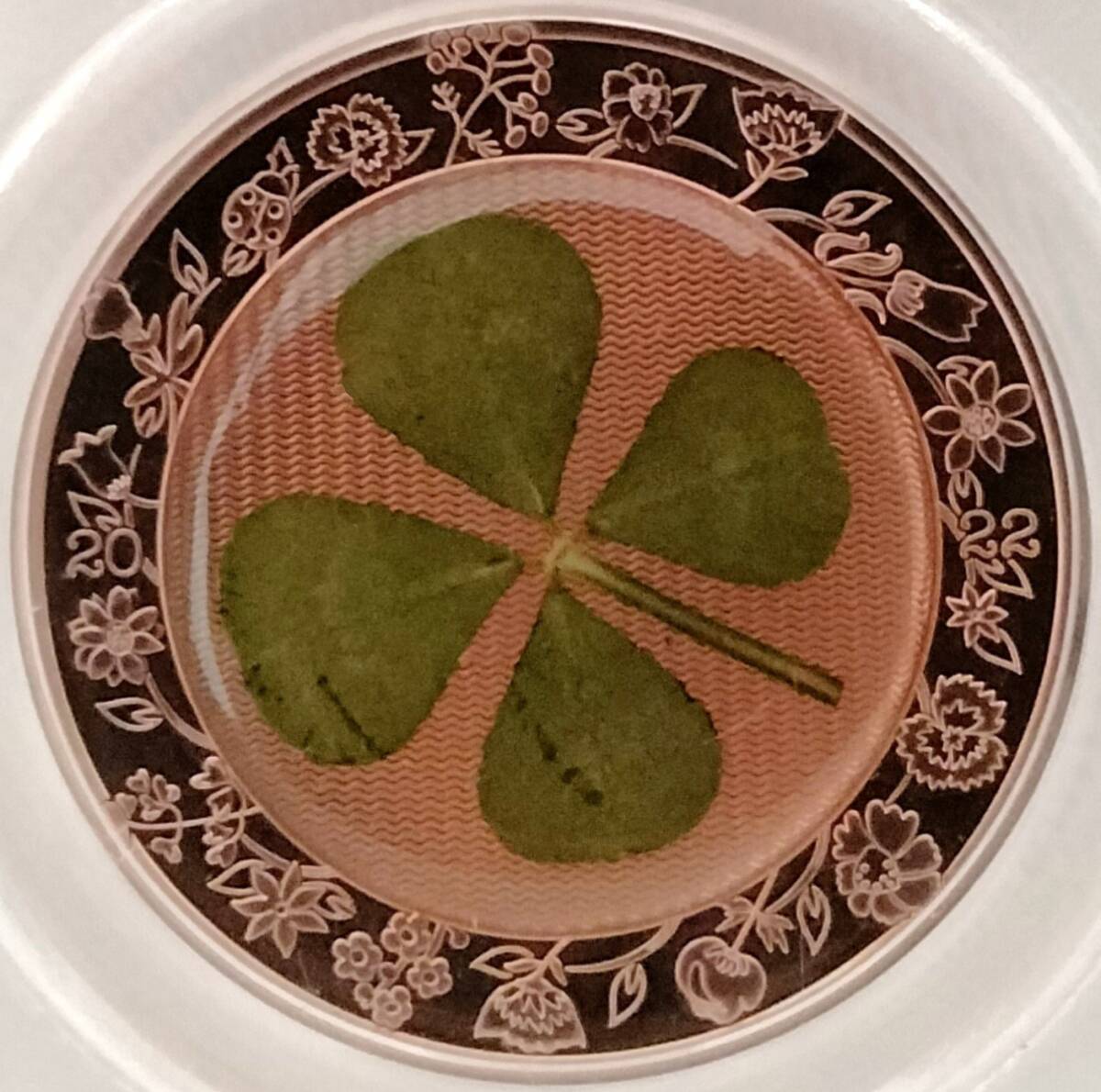 - 【 幸運の四葉のクローバー 】 最高鑑定 2022 パラオ共和国 5ドル 銀貨 銀92.5% 金メッキ PCGS PR70 DEEP CAMEO First Day of Issue