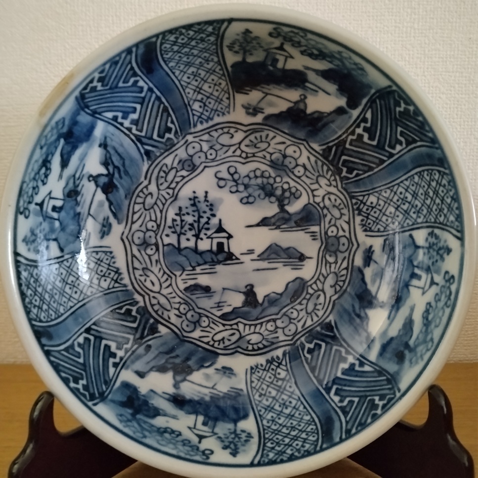 - 有田焼 貞泉窯 大鉢 手書き 染付 丈夫 頑丈 山水画 箱なし