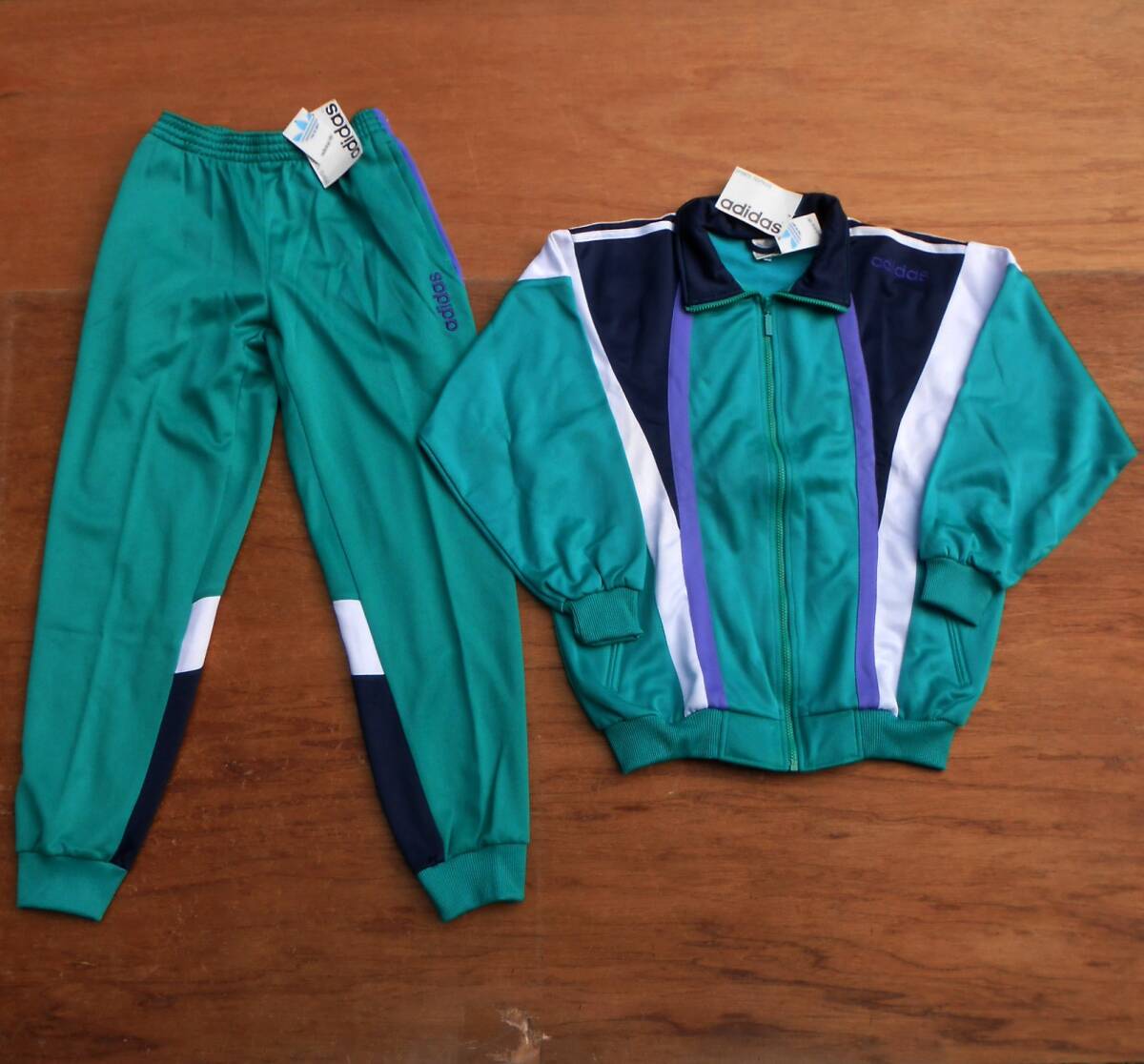 - 未使用 '80s adidas ジャージ セットアップ 6 トラックジャケット Lサイズ 緑 グリーン 紺 ネイビー 紫 白 タイ製 ヴィンテージ アディダス