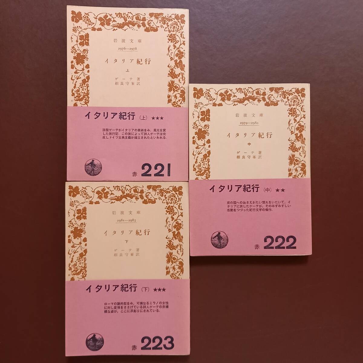 - 《全3冊》ゲーテ 「イタリア紀行」相良守峯 訳(岩波文庫、昭和39年)