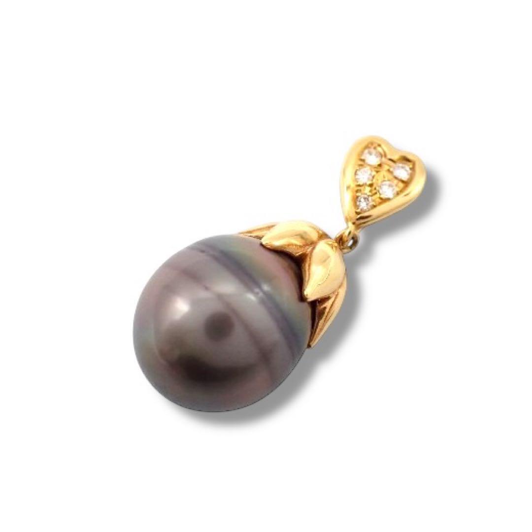 > タサキ 田崎真珠 TASAKI 黒蝶真珠 パール ダイヤモンド ダイヤ 0.05ct ネックレストップ ペンダントトップ K18 YG イエローゴールド 3590