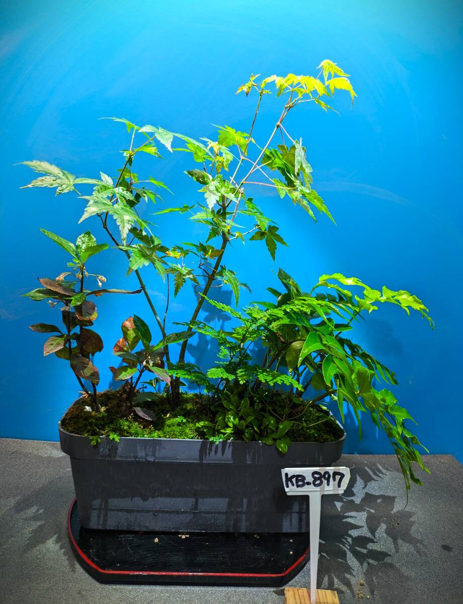 - ●○夢道園の樹脂鉢、もみじ、ヤブソテツ、岩松、ヤブコウジ等の寄せ植え苔盆栽■コケ、苔■山野草■KB-897○●
