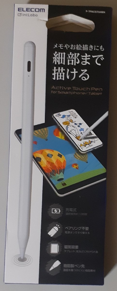 - 5964 P-TPACST04 ELECOM 汎用タッチペン(充電式) 幅広いスマートフォン・タブレットに対応!USB Type-Cで充電可能なアクティブタッチペン