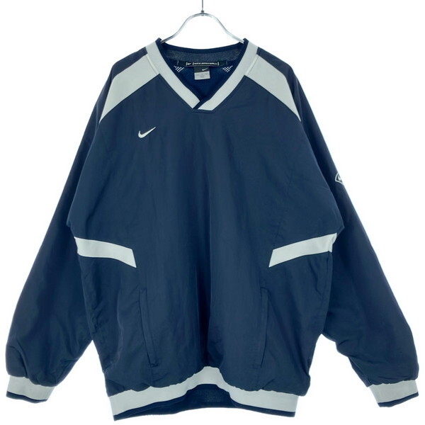 - 古着 メンズXL NIKE/ナイキ 裏メッシュ Vジャン 長袖 ウインドブレーカー 野球 ソフトボール ネイビー/ホワイト 142968
