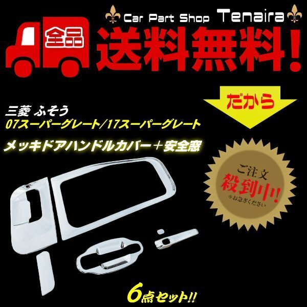 > 三菱 ふそう 17 07 スーパーグレート メッキ ドア ハンドル ノブ カバー 安全窓 6点 鏡面 パネル 左右 トラック デコトラ 送料無料/2