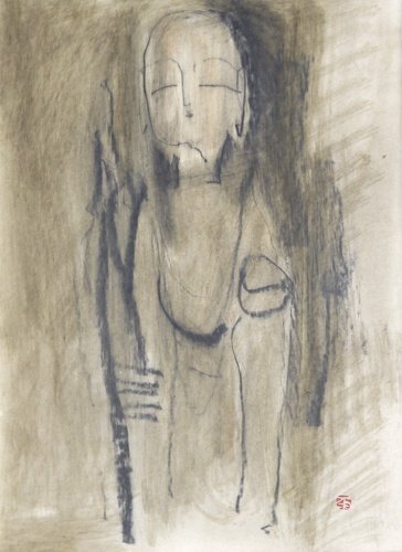 - 【真作】横手由男 水墨画 「地蔵妙音同聚院」 雨情縁(うじょうゆかり)・「雨さん」の通称で知られた放浪画家【信頼と実績の正光画廊】
