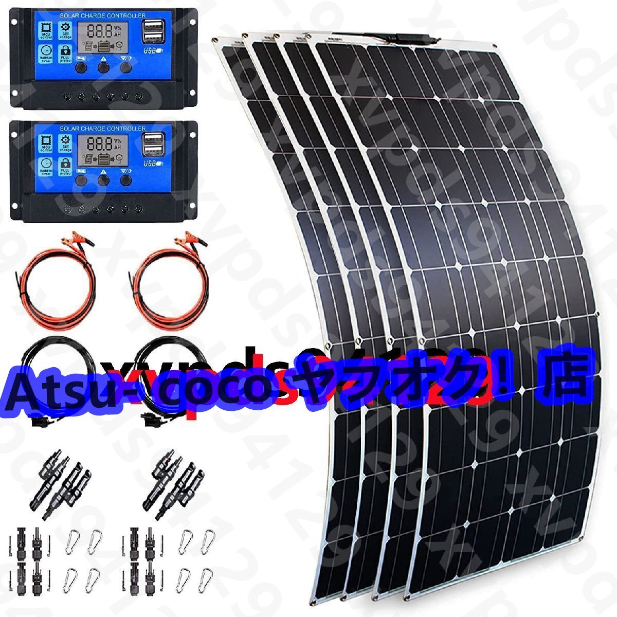 - 1200W 18vポータブルソーラーパネルモジュールキット、コントローラー40A付き4×300Wフレキシブルソーラーパネル