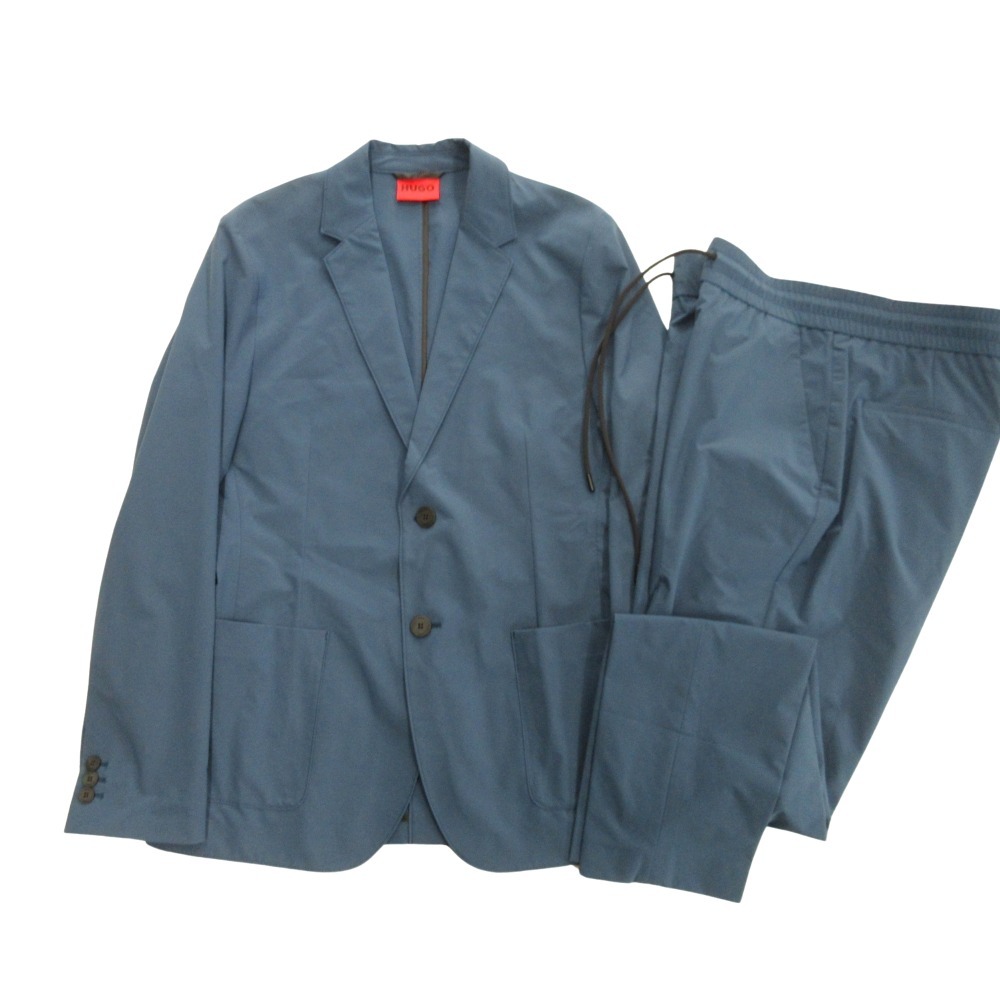 > 美品 HUGO BOSS ヒューゴボス セットアップ スーツ テーラード ジャケット イージー パンツ 背抜き アンコン 46 青 ブルー