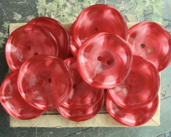 - 即決 ボタン 12個 φ31mm レッド 2穴 光沢 ツヤ プラスチック 樹脂 フランス輸入