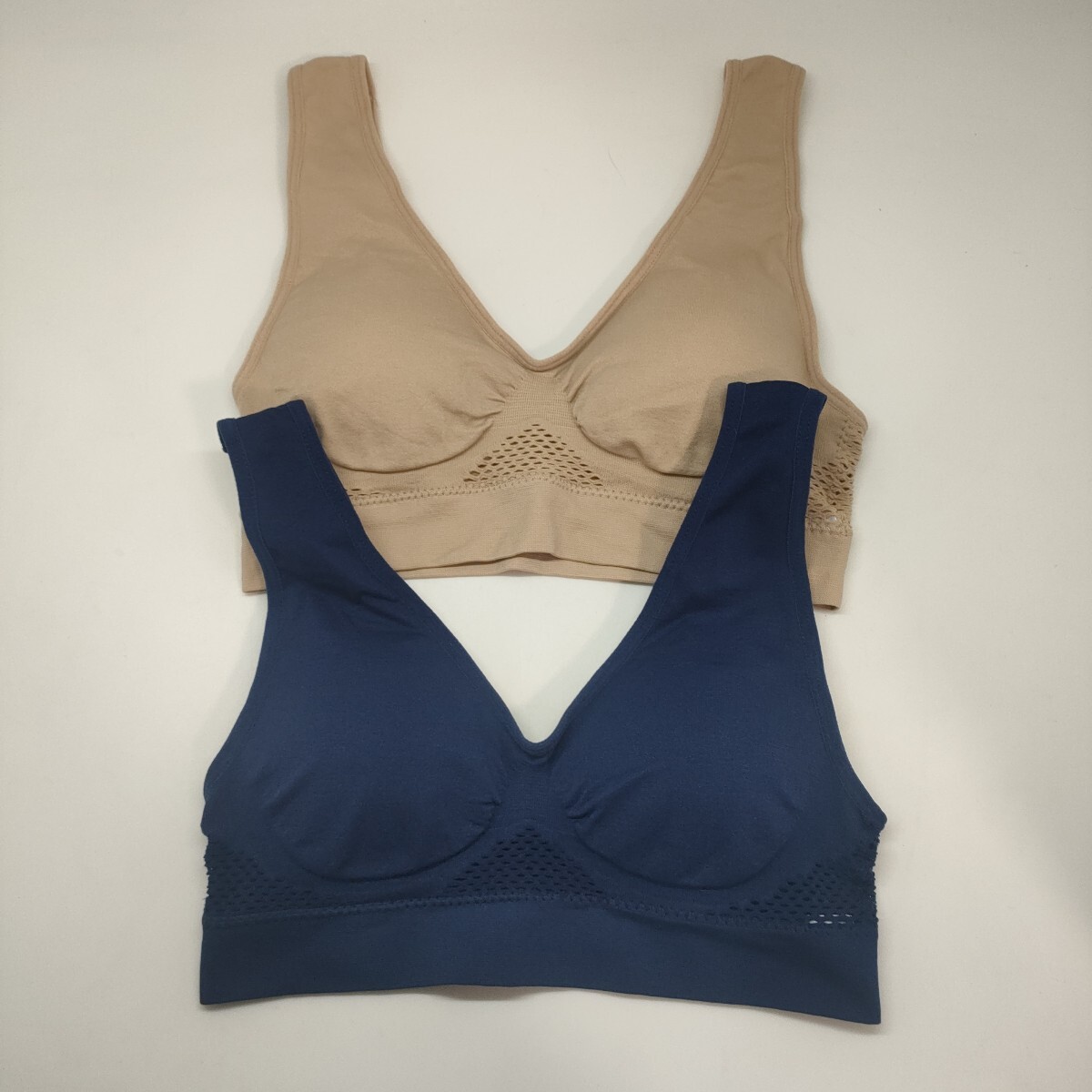- 未使用 【エアーフィットライトブラ2色組】 MサイズOK L〜LL パット入り ナイトブラ スポーツブラ ノンワイヤー ネイビー ベージュ