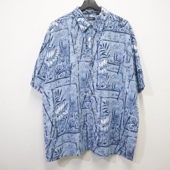 - A537 90sビンテージ ピューリタン 半袖シャツ■1990年代製 表記XLサイズ ブルー レーヨン アメカジ ストリート 総柄 古着 古着卸 オールド