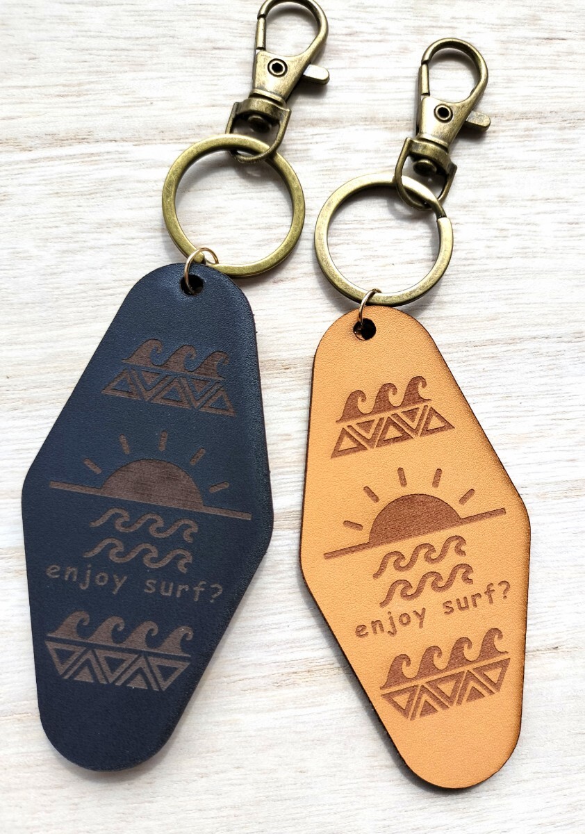 - enjoysurf?革キーホルダー モーテルキー サーフィン 海 ハワイ ヌメ革