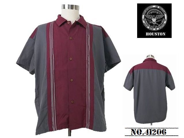 > 【送料無料 44%OFF】HOUSTON ヒューストン コード刺繍 切り替え 半袖シャツ NO.41206 CHARCOAL_Lサイズ