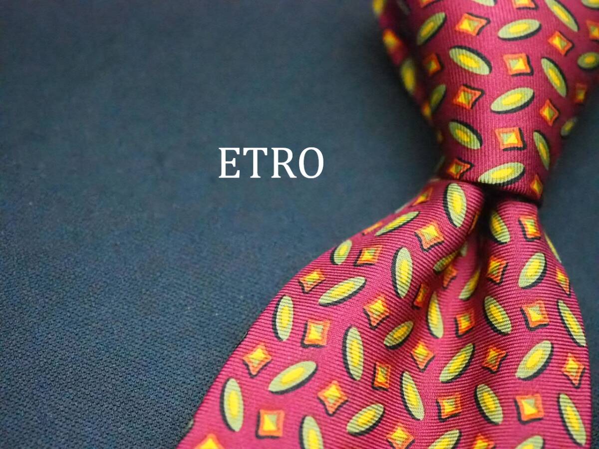 - 美品【ETRO エトロ】 E2602 ワイン系 SILK ブランド ネクタイ 古着 良品