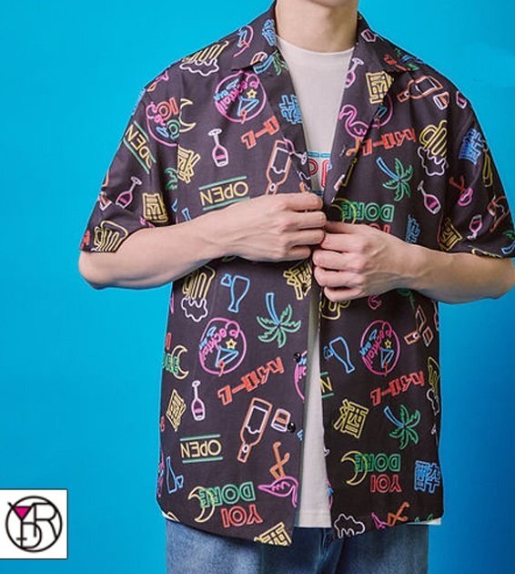 - 酒ネオンアロハシャツ◆YOIDORE ブラック Lサイズ L(大ジョッキ) 825711 ヨイドレ 酔いどれ ハワイアン