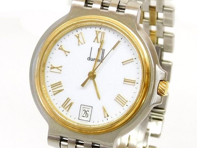 - Dunhill ダンヒル Elite エリート ■ 2ロウ デイト メンズボーイズ 32mm K18コンビ SS/YG 白文字盤 クオーツ 時計 ウォッチ□7F