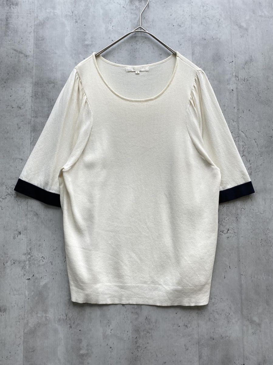 - ゆうパケットOK grove グローブ 768-17026 半袖 薄手 やわらかドライタッチ フレア袖 ニット セーター sizeM/アイボリー ■◆