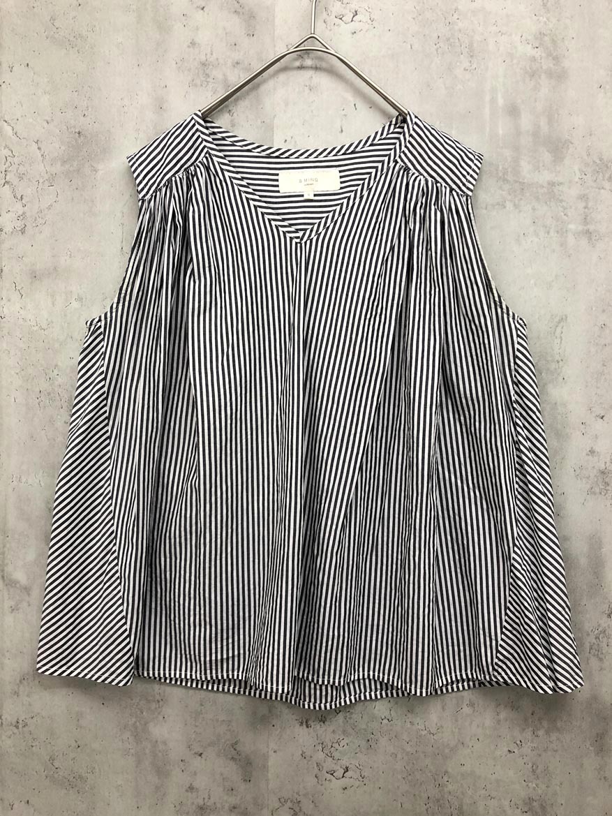 - ゆうパケットOK B:MING by BEAMS Vネック ストライプ ノースリーブ シャツ sizeS/グレー系 ■◆ ☆ ffc7 レディース