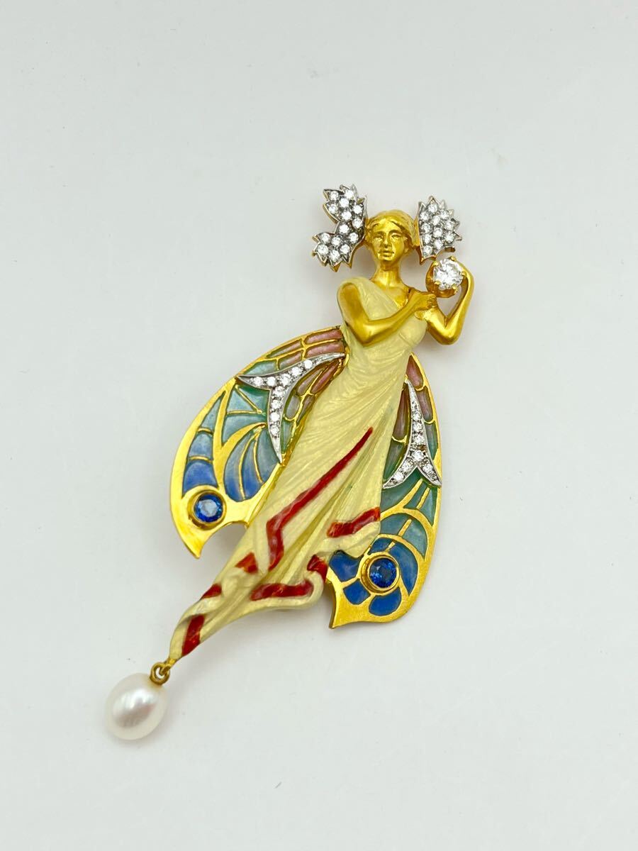 - 【希少】マリエラ ブローチ ペンダントトップ ダイヤ サファイア 真珠 K18 18金 イエローゴールド
