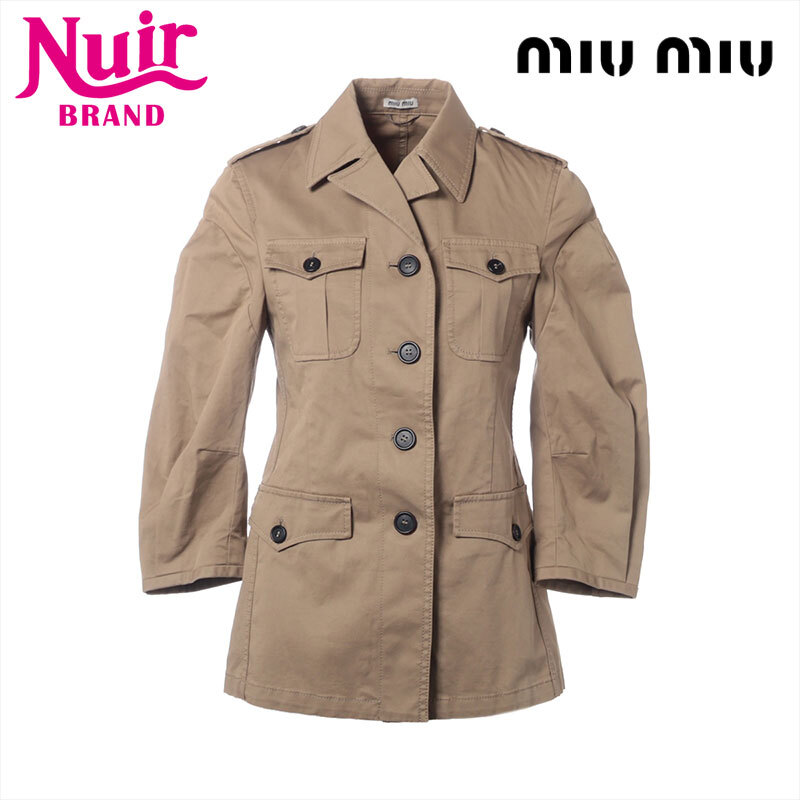 - ミュウ ミュウ Miu Miu ジャケット 2010 コットン Size:38 ミリタリー ベージュ