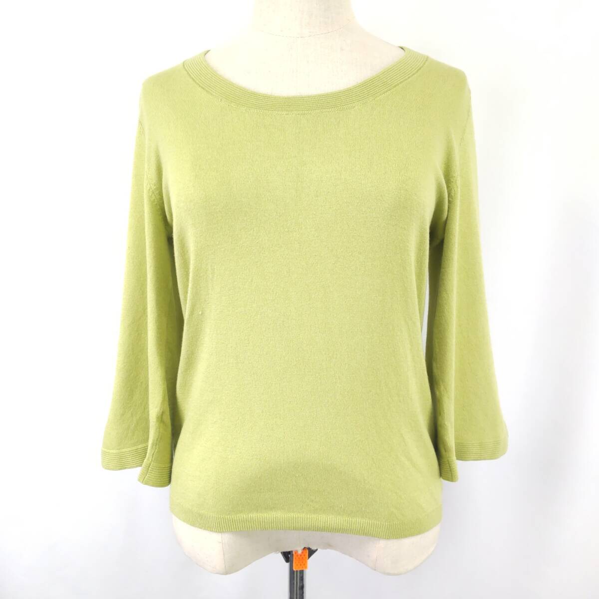 > 美品★excellent RAMUZ【エクセレント ラミューズ】七分袖 セーター シルク混【3/レディースM-L/黄緑/light green】Tops/Sweater◆BJ007-e