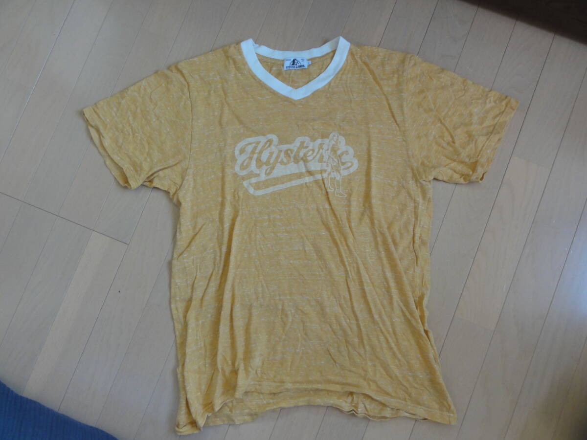 > HYSTERIC GLAMOUR Vネック半袖シャツ 黄色 Lサイズ 02182CT03