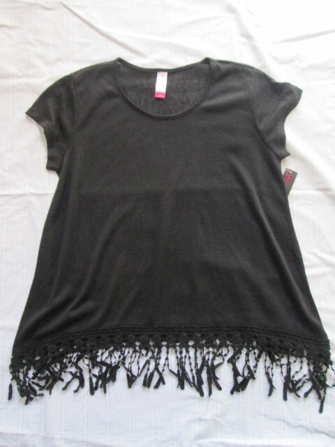 - 新品 タグ付き●黒色 サマーニット チュニック カットソー 裾に長めのフリンジが可愛い 程よい透かし 可愛い