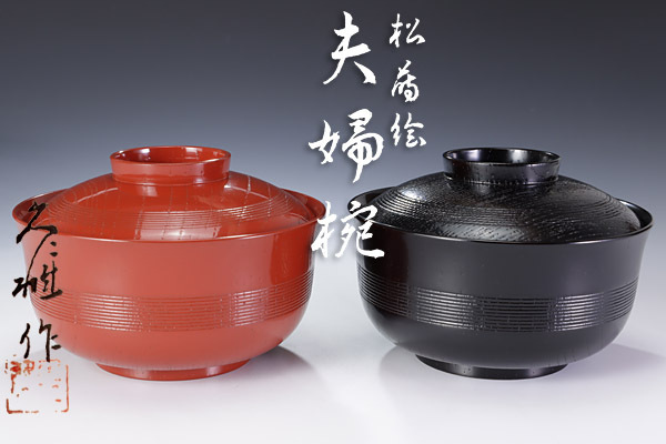 - ★【古美味】河合久仁雄作 松蒔絵夫婦椀 茶道具 保証品 T3iU