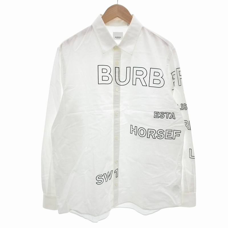 - バーバリー ロンドン BURBERRY LONDON 21SS ホースフェリー ロゴ プリント 長袖 シャツ L 白 黒 ブラック ホワイト メンズ