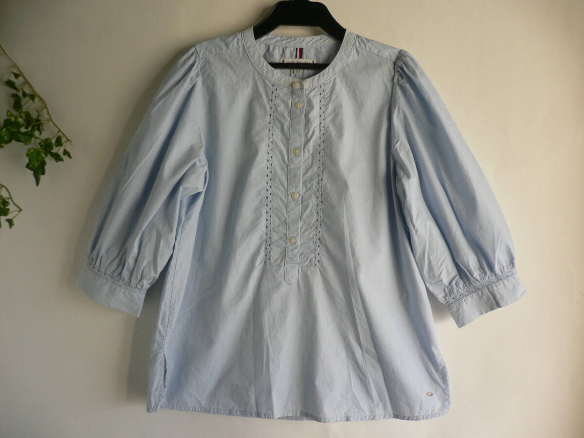 - トミーヒルフィガー ブルーコットンパフ袖 シャツブラウス TOMMY HILFIGER