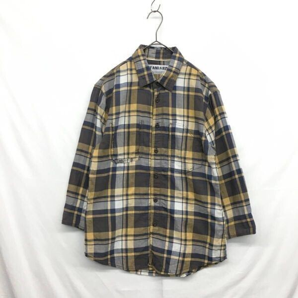 > HZ9390★STANDARD : ダメージ加工 ヘリンボーン7分袖シャツ★44★イエロー系チェック柄 スタンダード サザビーリーグ