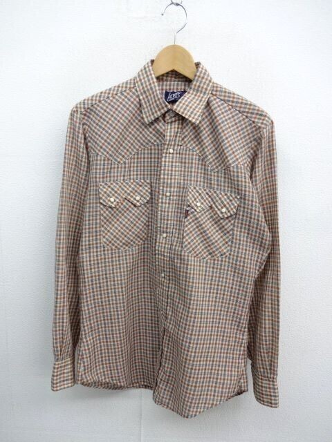 > HZ7859★70's Levi's 青タグ チェック柄ウエスタンシャツ★M★オレンジ ブラウン★リーバイス