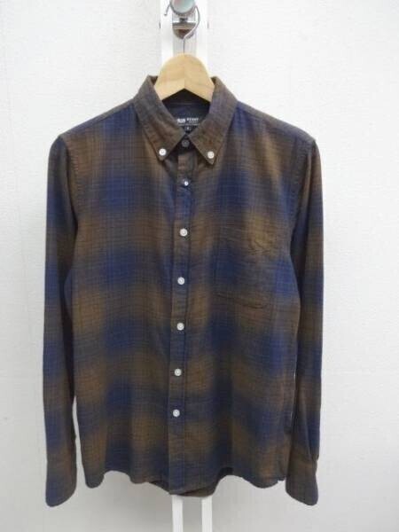 - HZ9157★BEAMS チェック柄フランネルシャツ★S★ブラウン/ネイビー ビームス