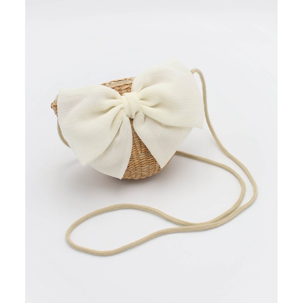 > ☆ オフホワイト ☆ FREE ☆ ビックリボンラタンショルダーバッグ キッズ かわいい ポシェット かごバッグ ショルダーバッグ