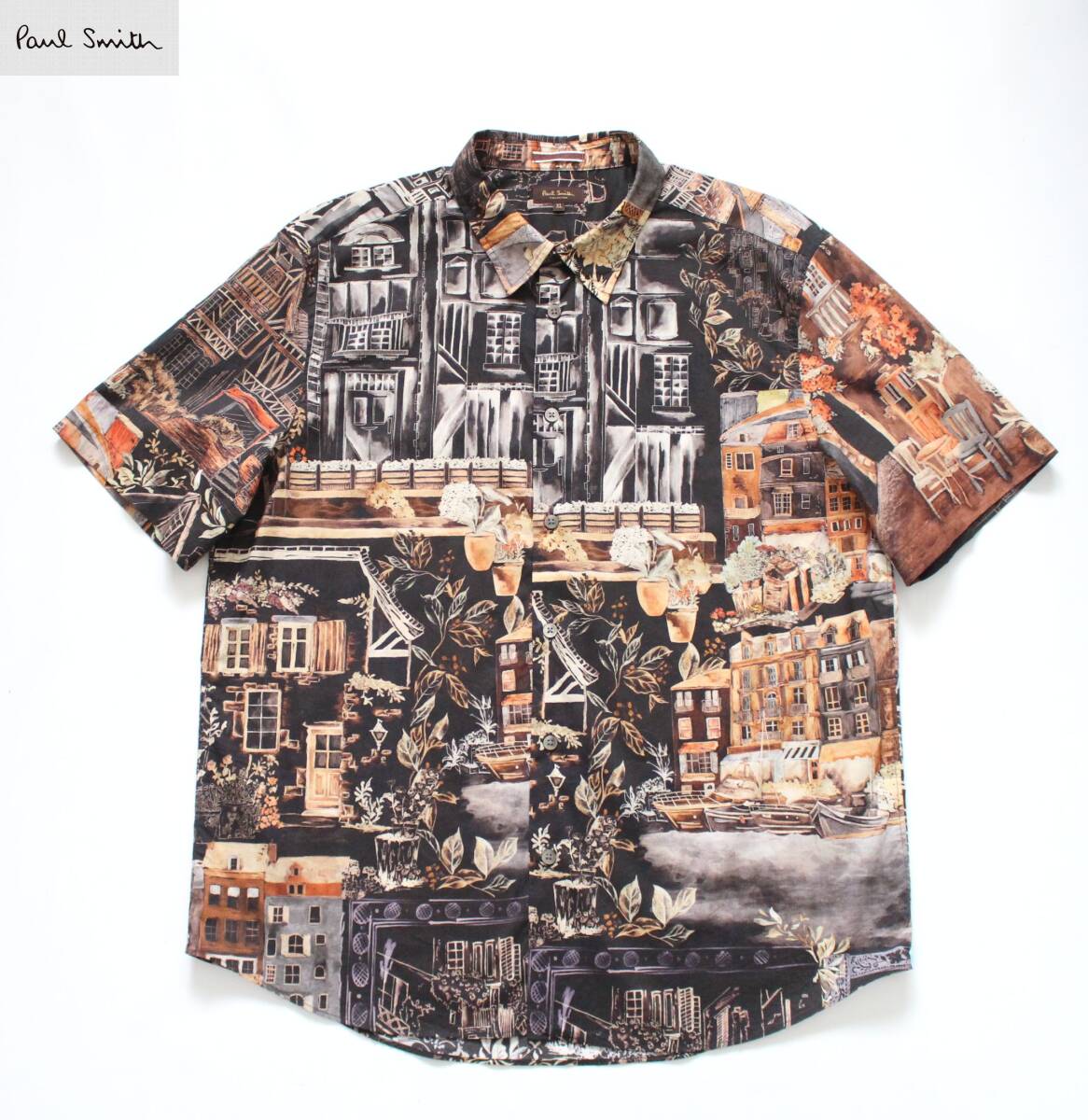> 【 Paul Smith COLLECTION ポールスミス 】ペインテッドハウス 半袖 プリントシャツ XL 総柄 104382 898SN 定価¥27,500 20S/S コットン