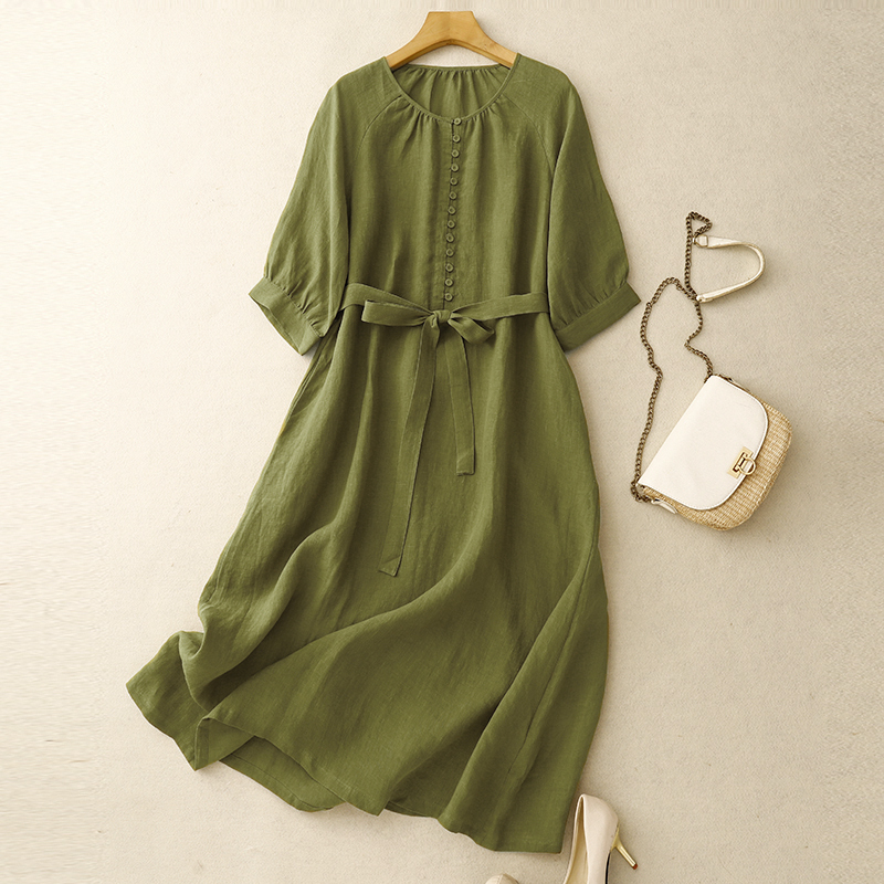 - 新入荷*上品 無地 ロングワンピース キレイめ 大きいサイズ 夏 きれいめ 着痩せ 涼しい 半袖 マキシワンピース * グリーン
