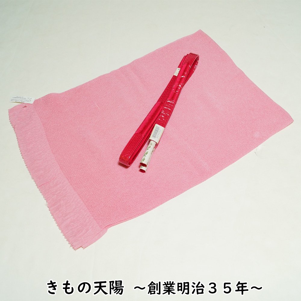 - 帯揚げ・帯締め 2点 セット 未使用品 カジュアル向き ピンク色系 無地 平組 鬼しぼちりめん リサイクル品 中古 正絹 リサイクル着物