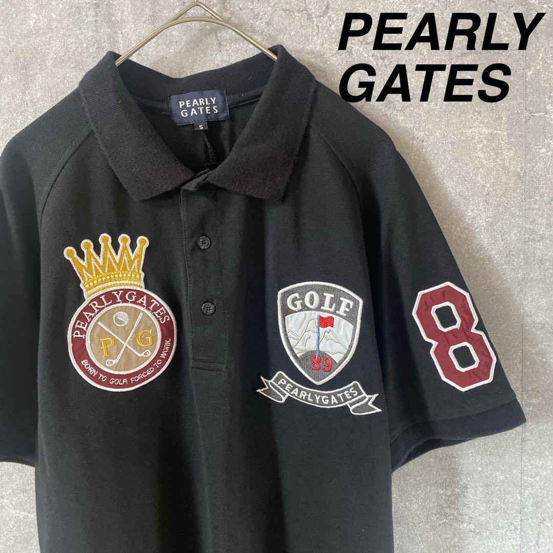 - PEARLY GATES 黒ポロシャツ 刺繍ワッペン バックプリントサイズ5