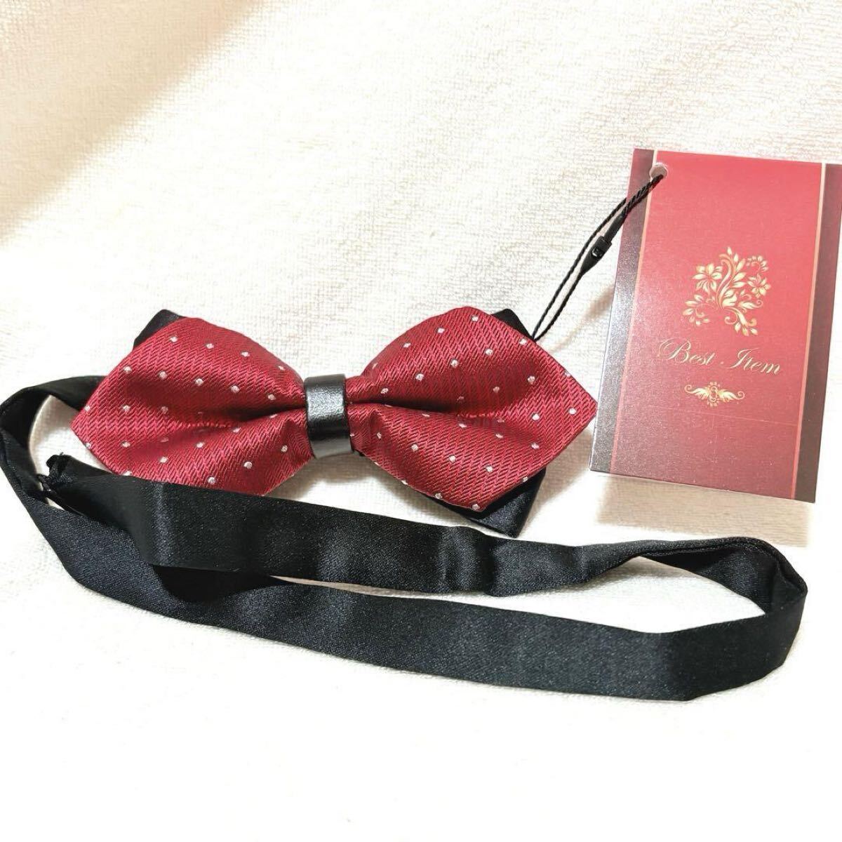 - 新品 蝶ネクタイ ボウタイ ワイン 赤 水玉 ドット フォーマル 結婚式 発表会