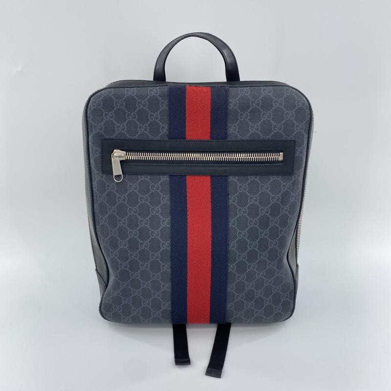> 【中古】GUCCI GGスプリーム バックパック 478324 ブラック レッド グッチ[240017559428]