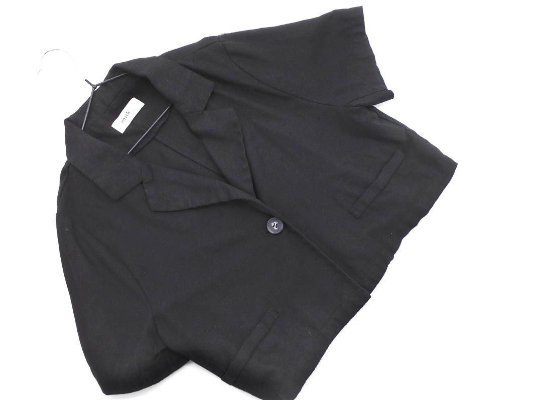 - earth music&ecology アースミュージック&エコロジー ショート丈 ジャケット sizeF/黒 ■◆ ☆ fga1 レディース