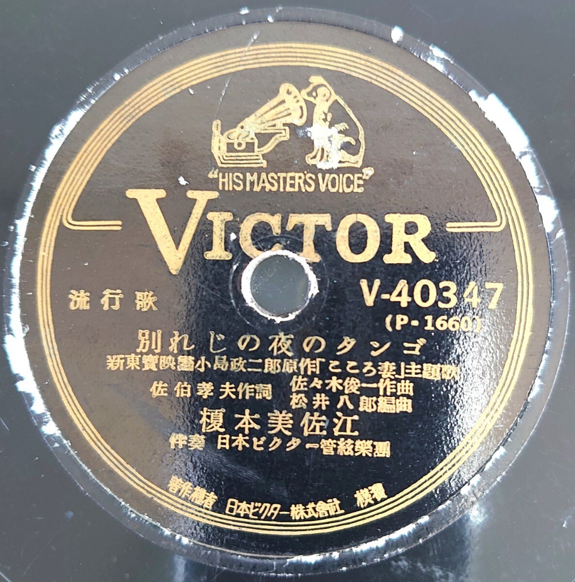 - 【SP盤レコード/縁欠】VICTOR V-40347 流行歌/別れじの夜のタンゴ 榎本美佐江/こころ妻 竹山逸郎・生田惠子