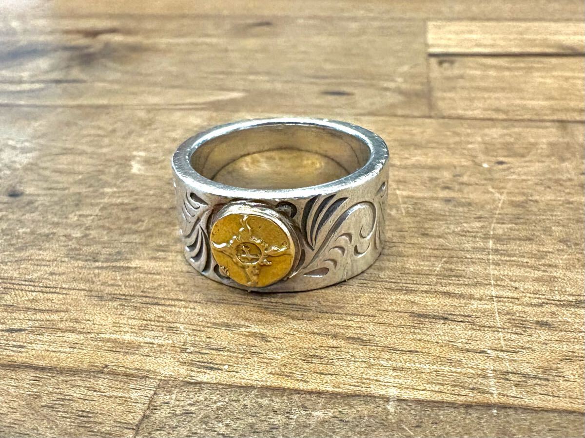 - 早い者勝ち!19.5号【国内正規品・美品・送料無料】FIRST ARROW's ファーストアローズ K18付 平打12mmカラ草彫りリング 指輪 シルバー925