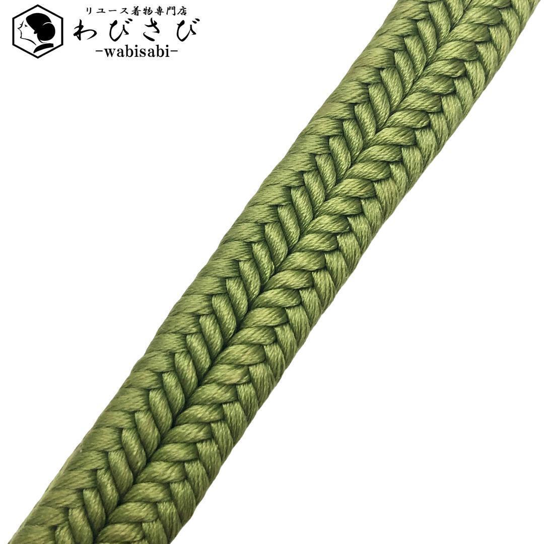 - 和装小物 帯締め 正絹 冠組 平組紐 組紐 鶯色 C-5997 着物 きもの kimono 和服 和装 中古 リサイクル着物 【送料無料】